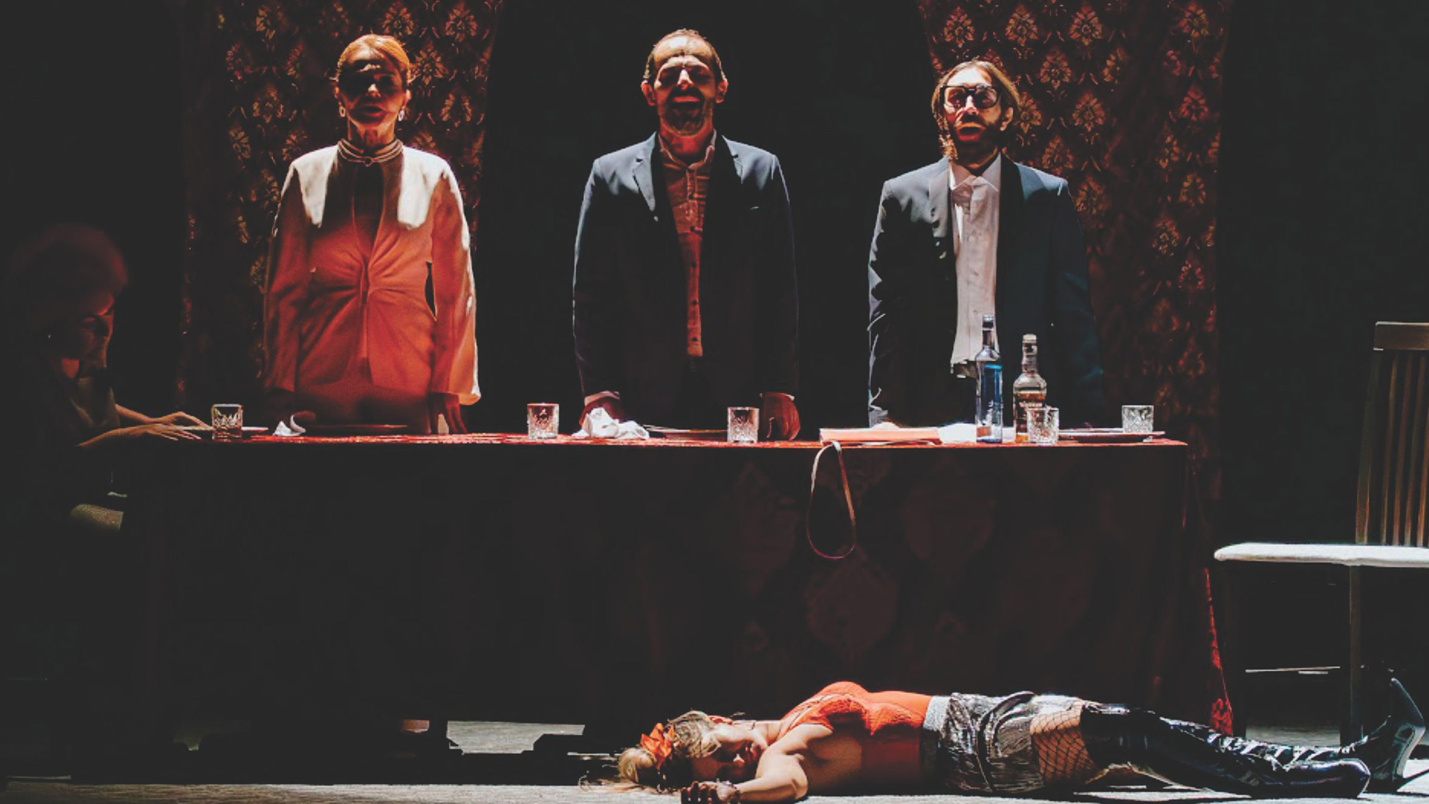 Deloc de neglijat sunt cele trei personaje care întruchipează familia Walter (soț, soție și fiu), invitată la o cină de afaceri. Cei trei sunt conduși de vocea mamei care dictează totul și se sincronizează perfect în gesturi și atitudini. Aceștia (Gianina Iconaru, Ștefan Abrudan, Dumitru Stegărescu) sunt hazlii prin felul de a vorbi, ticuri și interpretarea unui fragment dintr-un concert de Bach. Bărbații familiei, în ciuda seriozității aparente, sunt atrași de amantă.